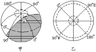 2.读图,其中甲图的阴影部分表示黑夜,回答下列问题。(每空2分,共14分)