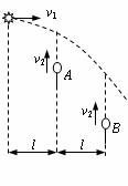 22(本题 12分)在高处以初速度v1水平抛出一个带刺飞镖,在离开抛出点水平距离L 、 2L处有A、B两个小气球以速度v2匀速上升,先后被飞镖刺破(认为飞标质量很大,刺破
