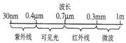 11.太赫兹辐射(1THz=1012Hz)是指频率从0.3THz到10THz、波长介于无线电波中的毫米波与红外线之间的电磁辐射区域,所产生的T射线在物体成像、医疗诊断、环境检测、通讯等方面具有广阔的应用前景.最近,科学家终于研制出以红外线激光器为基础的首台可产生4.4THz的T射线激光器,从而使T射线的有效利用成为现实。已知普朗克常数h=6.63×10-34J·s,关于4.4THz的T射线,下列说法中错误的是 ( BC )