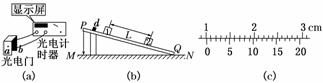 4.(2010·宿迁模拟)光电计时器是一种研究物体运动情况的常用计时仪器,其结构如图实-1-10(a)所示,a、b分别是光电门的激光发射和接收装置,当有物体从a、b间通过时,光电计时器就可以精确地把物体从开始挡光到挡光结束的时间记录下来.图(b)中MN是水平桌面,Q是长木板与桌面的接触点,1和2是固定在长木板上适当位置的两个光电门,与之连接的两个光电计时器没有画出,长木板顶端P点悬有一铅锤,实验时,让滑块从长木板的顶端滑下,光电门1、2各自连接的计时器显示的挡光时间分别为1.0×10-2s和4.0×10-3s.用精度为0.05 mm的游标卡尺测量滑块的宽度为d,其示数如图(c)所示.
