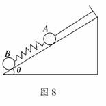 8.如图8所示,A、B球的质量相等,弹簧的质量不计,倾角为θ的斜面光滑,