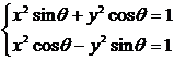 ,曲线x2sinθ+y2cosθ=1和x2cosθ-y2sinθ=1有4个不同的交点。