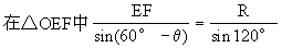 如图2-19 (2),设∠FOA=θ,则EF=2Rsin(30°-θ),在△OFG中,∠OGF=150°