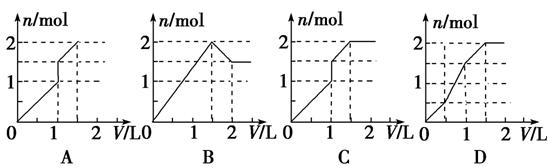 11.向含1 mol HCl和1 mol MgSO4的混合溶液中加入1 mol·L-1的Ba(OH)2溶液,产生沉淀的物质的量(n)与加入Ba(OH)2溶液体积(V)间的关系图正确的是 ( )