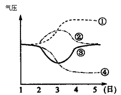 图7表示不同天气系统经过某地时气压示意图,据此回答13-14题。