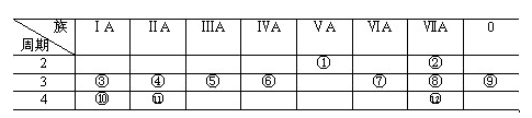 17.下表是元素周期表的一部分,回答下列有关问题: