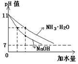 的氨水和氢氧化钠溶液。若将它们加水稀释相同的倍数,试比较(Ⅰ)组和(Ⅱ)组