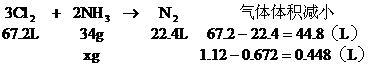 L氯、氮混合气(90%Cl2、10%的N2)通入浓氨水实验测得逸出气体在标况下为0.672L(50%的Cl2、50%的N2),问在反应中有多少g氨被氧化?