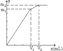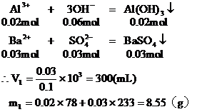 从图中可以看出,当加入V1mL的Ba(OH)2时,可得沉淀m1 g,沉淀为BaSO4和Al(OH)3,当加入V2mL Ba(OH)2时,Al(OH)3溶解,沉淀仅为BaSO4。