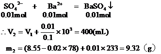 分析:本题要从分析图中所体现的产生沉淀的质量与加入Ba(OH)2体积的函数关系求出V1、V2和m1、m2的值。