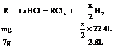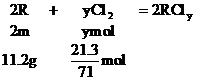 8.某金属R 7g跟足量的盐酸反应,在标准状况下,可得2.8L氢气;11.2g该金属可跟21.3g氯气完全反应,生成相应的氯化物,求该金属的原子量。