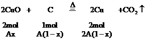 时,C过量,按②式中的CuO的量计算,生成铜为Ax,剩余C的物质的量为: