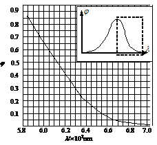 19.(4分)光强传感器对接收到的光信号会产生衰减,且对于不同波长的光衰减程度不同,可以用j表示衰减程度,其定义为输出强度与输入强度之比,j=I出/I入,右图表示j与波长l之间的关系。当用此传感器分别接收A、B两束光时,传感器的输出强度正好相同,已知A光的波长lA=625nm,B光由lB1=605nm和lB2=665nm两种单色光组成,且这两种单色光的强度之比IB1:IB2=2:3,由图可知jA=__________;A光强度与B光强度之比IA:IB=__________。