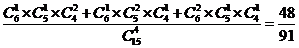 18.(2009重庆卷理)锅中煮有芝麻馅汤圆6个,花生馅汤圆5个,豆沙馅汤圆4个,这三种汤圆的外部特征完全相同。从中任意舀取4个汤圆,则每种汤圆都至少取到1个的概率为( )