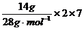 mol × 16 g·mol-1=8g,所以而的质量比为28g︰8g=7︰2,因此D选项错误。