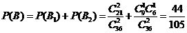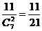还能组合5种,一共有11种。所以所求的概率为![]()