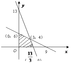 7.(2009四川卷文)某企业生产甲、乙两种产品,已知生产每吨甲产品要用A原料3吨,B原料2吨;生产每吨乙产品要用A原料1吨,B原料3吨,销售每吨甲产品可获得利润5万元,每吨乙产品可获得利润3万元。该企业在一个生产周期内消耗A原料不超过13吨,B原料不超过18吨.那么该企业可获得最大利润是