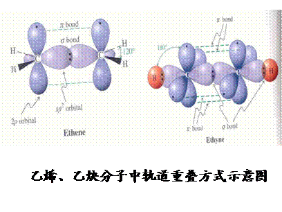 [思考与交流]1、试利用表2-l的数据进行计算,1 mo1 H2分别跟l molCl2、lmolBr2(蒸气)反应,分别形成2 mo1HCl分子和2molHBr分子,哪一个反应释放的能量更多?如何用计算的结果说明氯化氢分子和溴化氢分子哪个更容易发生热分解生成相应的单质? 3、乙烷:7个σ键 乙烯 :5个σ键一个π键 乙炔:3个σ键两个π键 [小结]电子配对理论:如果两个原子之间共用两个电子,一般情况下,这两个电子必须配对才能形成化学键 [投影]