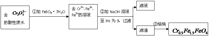 (1)第①步是Cr2O72与Fe2+发生氧化还原反应,方程式为:Cr2O72+6Fe2++14H+=2Cr3++6Fe3++7H2O;