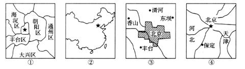 16、下列四幅关于北京的位置图,表示的内容最详细的是( )