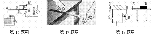 16. 下图是小明设计的一种自动测定水箱内水位的装置,R是滑动变阻器,从用电流表改装成的水位表指针所指的刻度就可知道水箱内水位的高低。