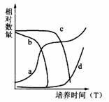 在适宜条件下,将大肠杆菌接种在含有葡萄糖和乳糖的培养液中。并随时测定培养液中葡萄糖、乳糖的浓度及菌体数量和诱导酶的合成量,所得结果绘成下图,图中能表示菌体细胞中诱导酶合成量的曲线为: