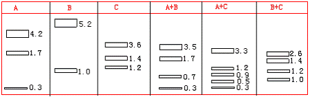 39. 限制性内切酶能识别特定的DNA序列并进行剪切,不同的限制性内切酶可以对不同的核酸序列进行剪切。现以3种不同的限制性内切酶对6.2kB大小的线状DNA进行剪切后。用凝胶电泳分离各核酸片段,实验结果如图所示。