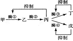 D.当丁物质和戊物质中任意一种过量时,酶①的活性都将受到抑制