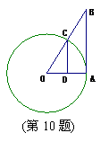10.如图,已知⊙O的半径为1.AB与⊙O相切于点A,OB与⊙O交于点C,CD⊥OA,垂足为D,则cos∠AOB的值等于