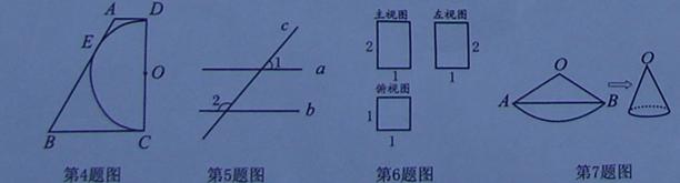4.如图,已知以直角梯形ABCD的腰CD为直径的半圆O与梯形上底AD、下底BC以及腰AB均相切,切点分别是D、C、E。若半圆O的半径为2,梯形的腰AB为5,则该梯形的周长是