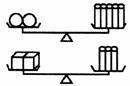 两个天平都平衡,则三个球体的重量等于多少个正方体的重量
