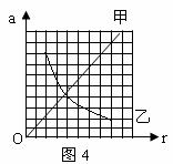10、甲、乙两球做匀速圆周运动,向心加速度a随半径r变化的关系图像如图4所示(甲为过原点的直线,乙为双曲线)。由图像可以知道