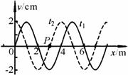 4.一列横波在t1和t2时刻的波形分别如图中的实线和虚线所示,已知波的传播速度是2.0 m/s。则以下的几种说法中,正确的是: