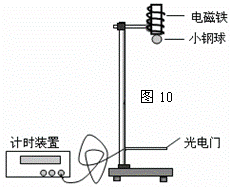 (2)如图10,在竖直放置的立柱上端有一个电磁铁,通电时,小球被吸在电磁铁上,断电时,小球自由下落,计时装置开始计时。立柱上有可以移动的光电门。当小球经过光电门时,光电计时装置能测出小球从初始位置到这个光电门所需时间为t,再用刻度尺测出电磁铁到光电门的距离s。为了探究自由落体的位移s与下落时间t的关系。