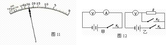 (2)为了更准确的测出该电压表内阻的大小,该同学设计了如图12甲、乙两个实验电路。你认为其中较合理的是 (填“甲”或“乙”)电路。其理由是: _________________