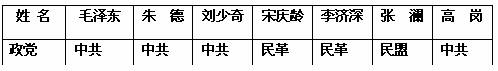 3. 下表为第一届中华人民共和国中央人民政府主席、副主席的政党状况: