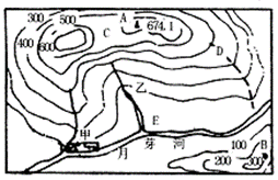读“我国东部某地的等高线示意图”和“该地区的气候资料表”,图中等高线所示高度分别为100m、200m、300m、400m。综合分析后,回答16-18题。