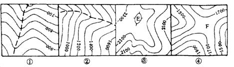 C.①山谷②山脊③山顶④鞍部 D ①山脊②山脊③山顶④鞍部