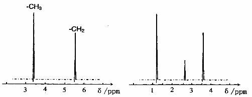 图4:Cl-CH2-O-CH3的核磁共振氢谱图   图5:A的核磁共振氢谱图