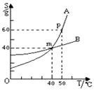 (4分)小明同学绘制了如右图所示A、B两种固体物质的溶解度曲线: