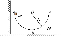 20.如图所示,半径为R,质量为M,内表面光滑的球形凹槽形物体放在光滑的水平面上,左端紧靠着墙壁,一个质量为m的物块从凹槽的顶端a点无初速释放,图中b点为凹槽的最低点,c点为凹槽另一侧与a等高的顶点,关于以后物块Mm的运动,下列说法正确的有: (   )