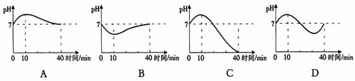 例3、(08河北南和6)人体口腔内唾液的pH通常约为7,在进食过程的最初10分钟,酸性逐渐增强,之后酸性逐渐减弱,至40分钟趋于正常。与上述事实最接近的图象是 ( )