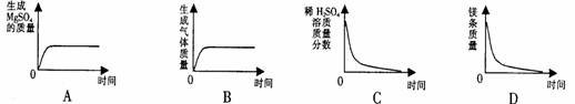 例4、(08南昌)小莹同学向过量的稀硫酸中加入一定质量的镁条后,绘制了如下表示其变化过程的坐标曲线图,其中不正确的是 ( )