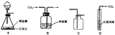 5、下列分别是二氧化碳制取、干燥、收集和性质检验的装置图,错误的是( )
