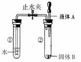 6、(06福州15) 如右图所示,打开止水夹,将液体A滴入试管②中