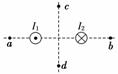 两根通电的长直导线平行放置,电流分别为I1和I2,电流的方向如图10所示,在与导线垂直的平面上有a、b、c、d四点,其中a、b在导线横截面连线的延长线上,c、d在导线横截面连线的垂直平分线上.则导线中的电流在这四点产生的磁场的磁感应强度可能为零的是( )
