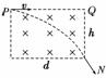 一电子以与磁场垂直的速度v从P处沿PQ方向进入长为d、宽为h的匀强磁场区域,从N点射出,如图12所示,若电子质量为m,电荷量为e,磁感应强度为B,则