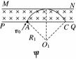 解析:过P点和N点作速度的垂线,两垂线的交点即为电子在磁场中做匀速圆周运动时