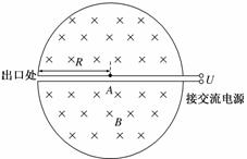 T,方向垂直于纸面向里.若炮弹出口速度为 v=2.0×103 m/s,求通过导轨的电流I.(忽略摩擦力与重力的影响)