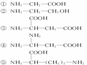 7、在下列物质中,有的属于构成人体蛋白质的氨基酸,有的不是。若将其中构成人体蛋白质的氨基酸缩合成化合物,则其中含有的氨基、羧基、肽键的数目依次是---------( )